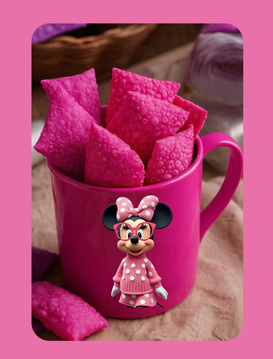 Se você busca inovação, diversão e muito lucro para o seu negócio, essa ideia é perfeita: mini pastéis feitos com *massas coloridas e saborizadas*, servidos em *canecas personalizadas com personagens infantis*!
